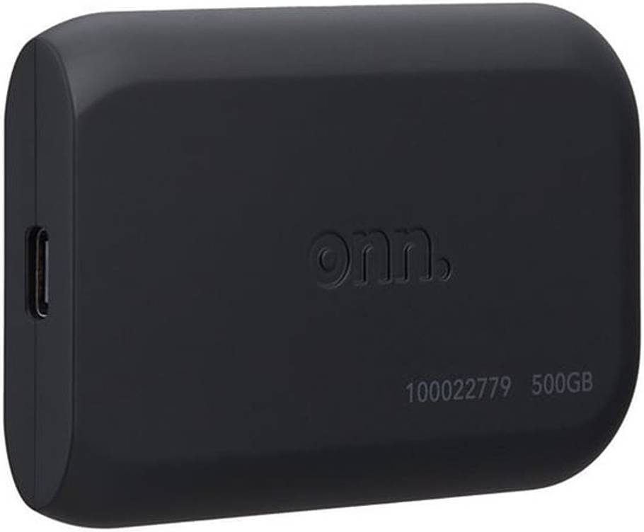 Onn External Portable Solid State Drive, 500 GB Storage, USB-Powered, Removable, Shock Resistant, Water Resistant, Compatible with Laptop / PC / Mac / Android, Black | 100022779