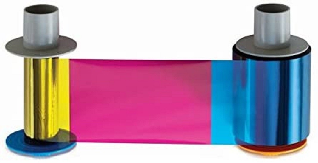 Fargo 45610 YMCKO( Yellow (Y), Magenta (M), Cyan (C), and Black (K). The remaining Overlay (O))colour ribbons are used to print single-sided full-colour cards with black resin text or barcodes and a clear overlay (protective layer) over the entire card.
