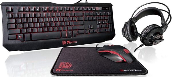 Thermaltake Tt eSPORTS Knucker 4-in-1 3 Color Membrane Keyboard, 2400 DPI Avago 5050 Optical Gaming Mouse, Headset & Mouse Pad Combo Kit | KB-GCK-PLBLUS-01