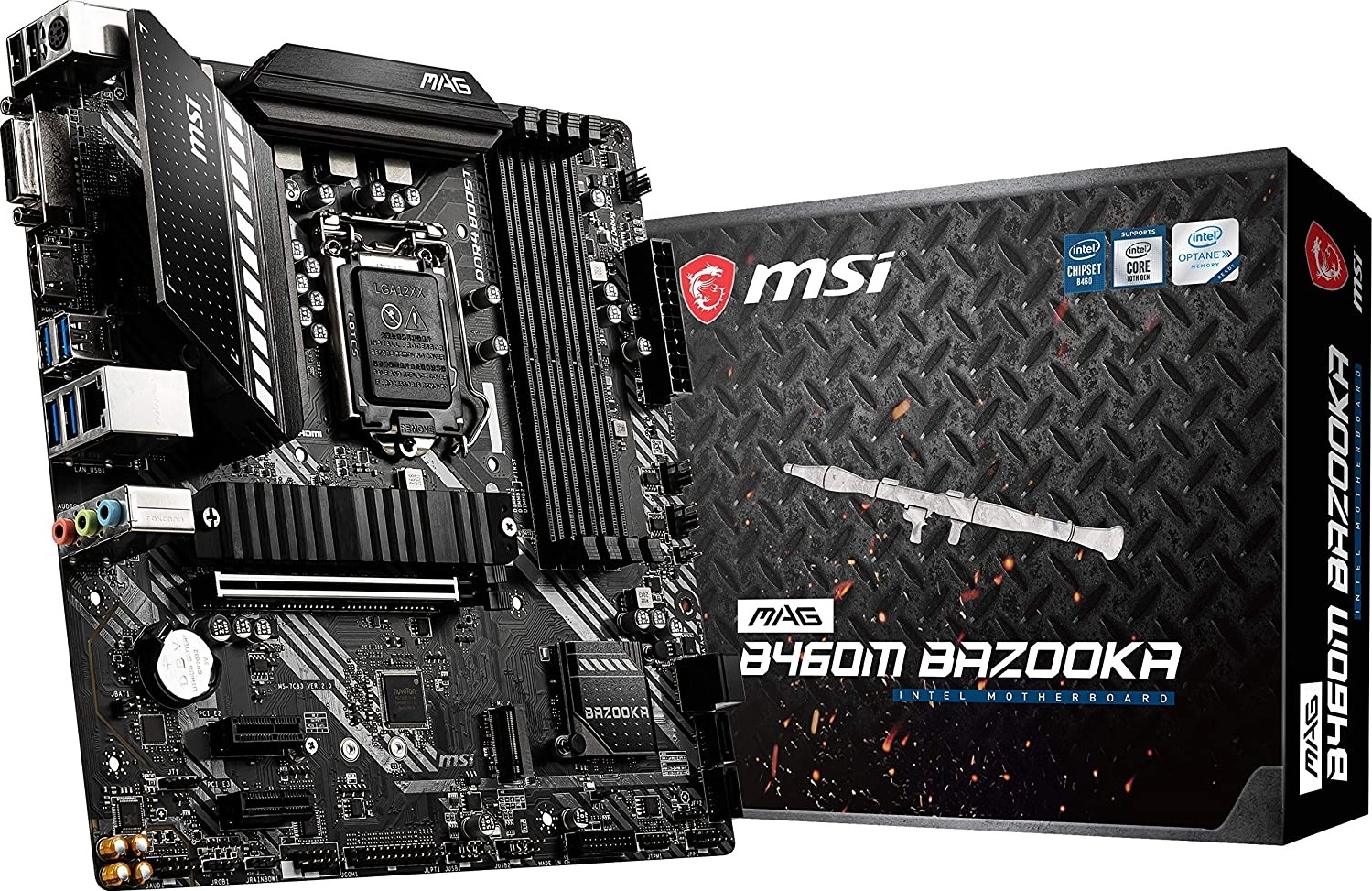 MSI MAG B460M Bazooka Gaming Motherboard (mATX, 10th Gen Intel Core, LGA 1200 Socket, DDR4, Dual M.2 Slots, USB 3.2 Gen 1, 2.5G LAN, DVI/HDMI) | 911-7C83-034