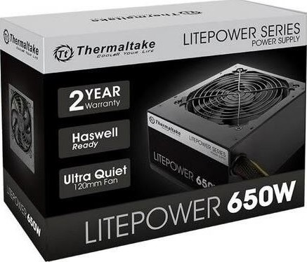 Thermaltake Litepower 650W Power Supply, Non Modular, ATX 2.3 & EPS, Active-PFC, PSU, 12cm, EU/Non, 80PLUS Black | PS-LTP-0650NPCNUK-2
